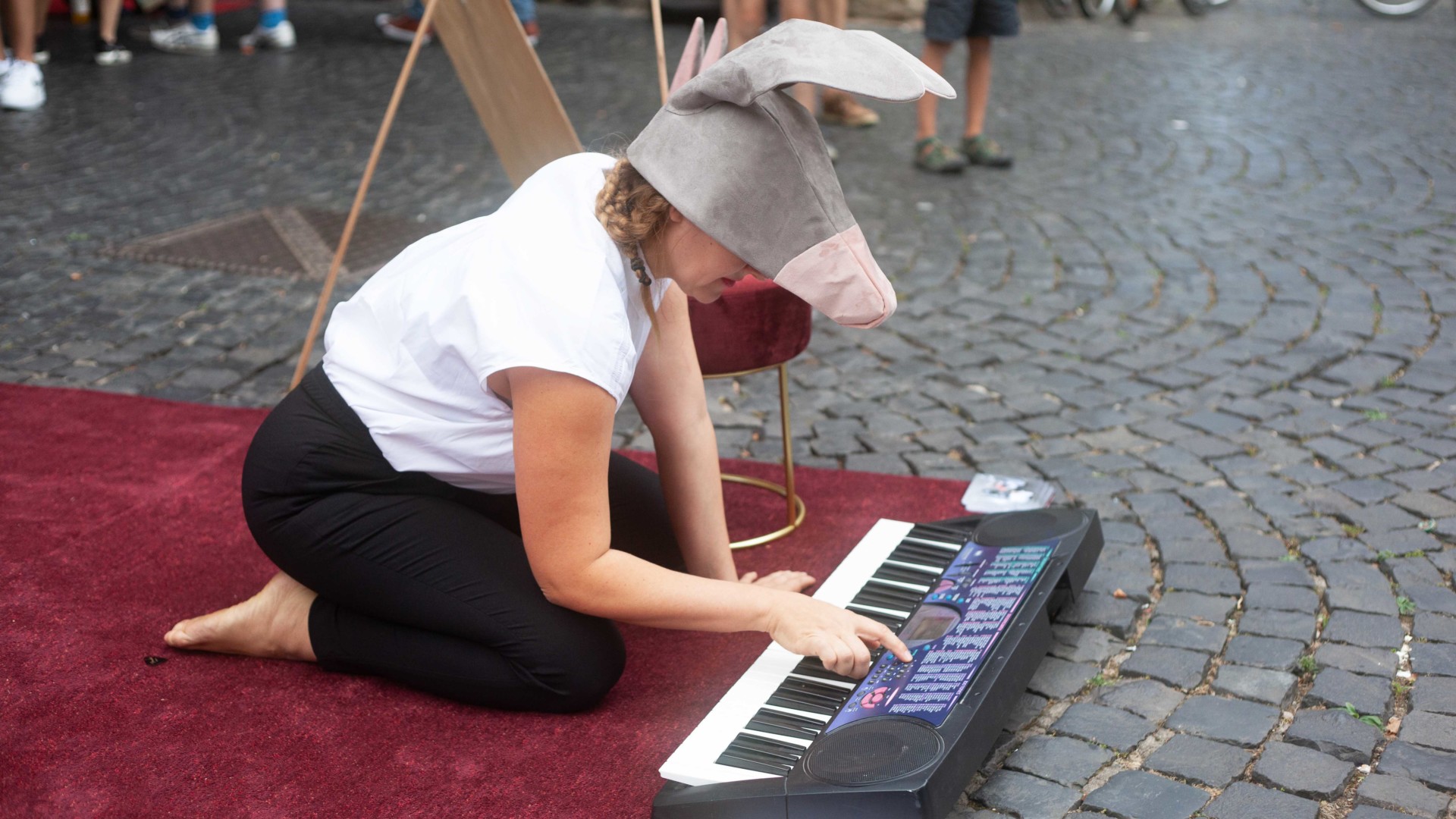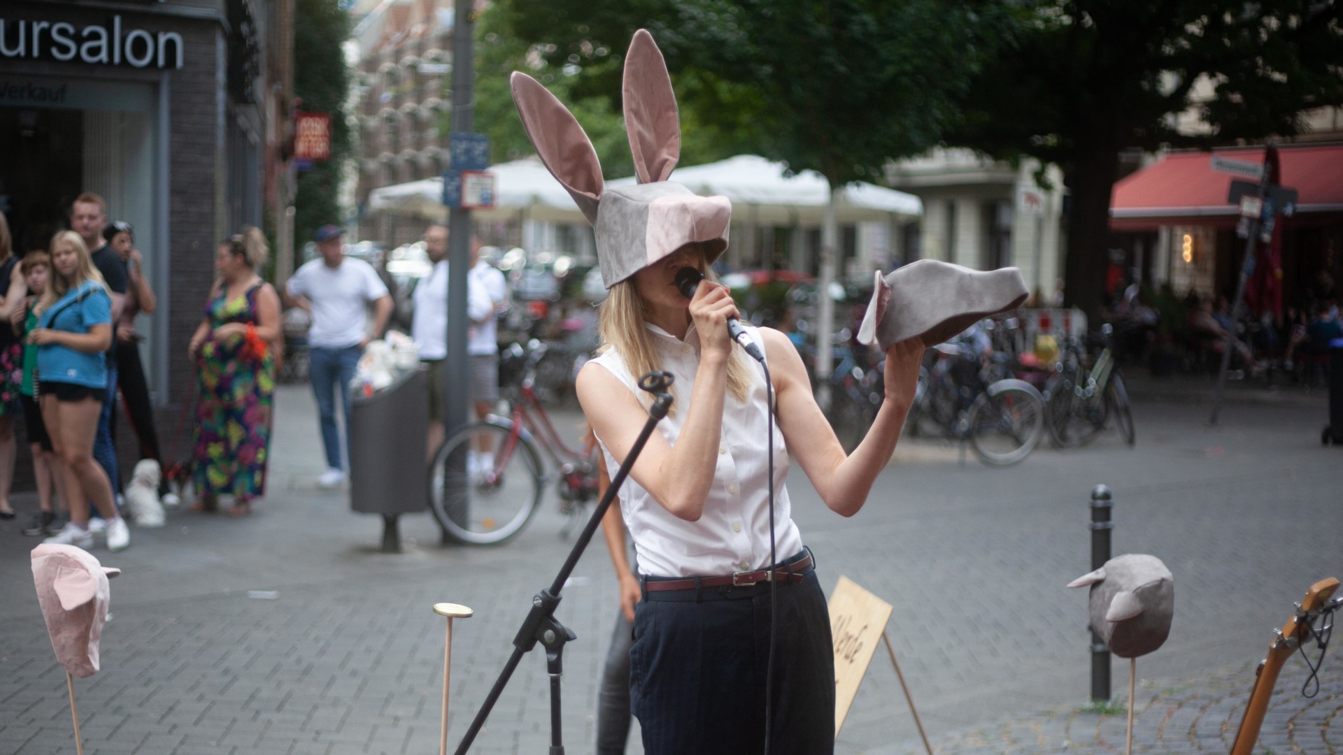 The artists katze und krieg are founding the Cologne town musician band and invite you to be a part of it! As donkeys they will be touring the public space in and around Cologne and you are invited to play along. The kick-off concert will take place on 21.8.22 in Cologne on the square behind of the Eigelsteintorburg. The audience is encouraged to use provided animal masks and instruments to participate in the ecstasy of improvised animal music making. Musical ability and skills are not required. Everyone can play along!